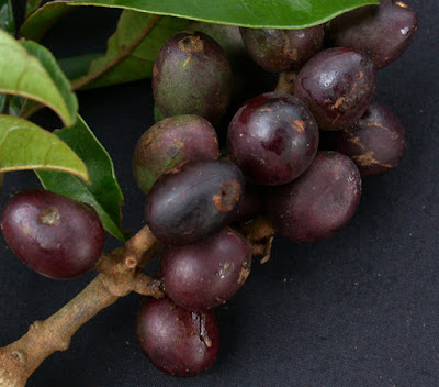 Tapirira guianensis. Os frutos são pequenos, mais de sabor agradável podendo ser consumido in-natura. Árvore é ornamental com flores muito melíferas.